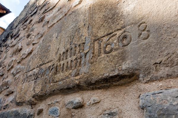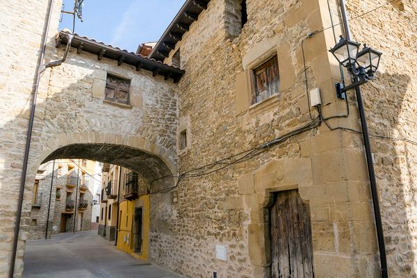 Uno y otro volumen están unidos por un paso cubierto sobre arco escarzano. En la parte posterior, pajares y otros edificios auxiliares, abiertos algunos de ellos con arcos de medio punto al corral central orientado al sur, que acaba de cerrarse por una tapia.