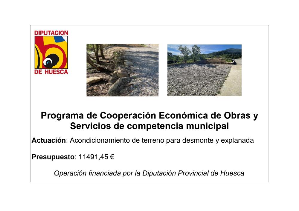 La inversión necesaria correspondiente a la totalidad de las obras asciende a 11.191,45 € que ha sido subvencionada por la Diputación de Huesca en su totalidad.